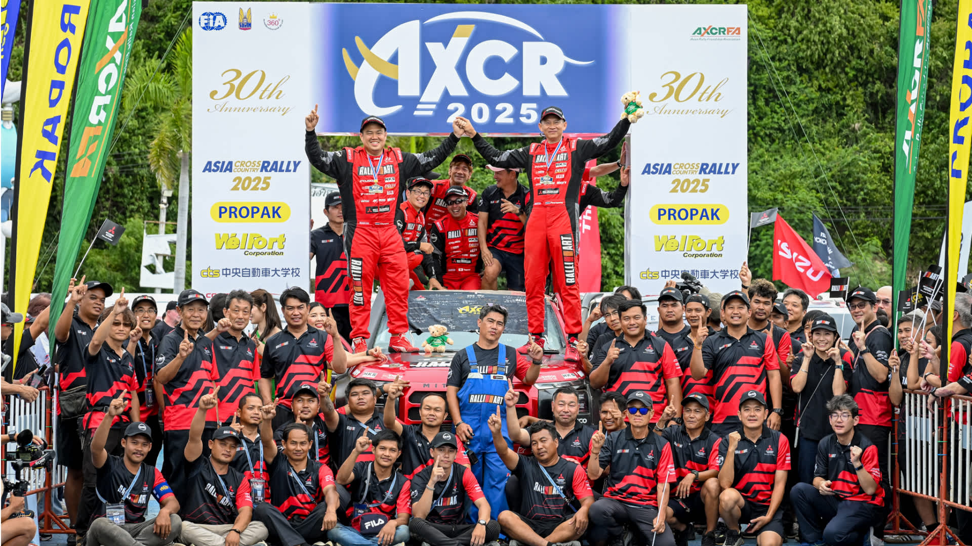Chayapon Yotha, the team’s ace driver, started in 12th position but quickly climbed the ranks with strong times in Leg 1, ending the first day in second place. Thanks to precise navigation by co-driver Peerapong Sombutwong and consistent driving that pushed for speed while minimizing mechanical strain, he took the overall lead in Leg 3. Despite getting stuck in deep mud during Leg 5, he maintained an aggressive pace and recorded the second fastest SS time in Leg 7. He held onto the lead and won the rally by a narrow margin of seven minutes, claiming his second overall AXCR victory – his first in three years.